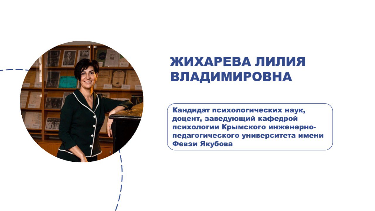 Заместитель Крымского отделения РПО – Жихарева Лилия Владимировна Кандидат психологических наук, доцент, заведующий кафедрой психологии Крымского инженерного-педагогического университета имени Февзи Якубова