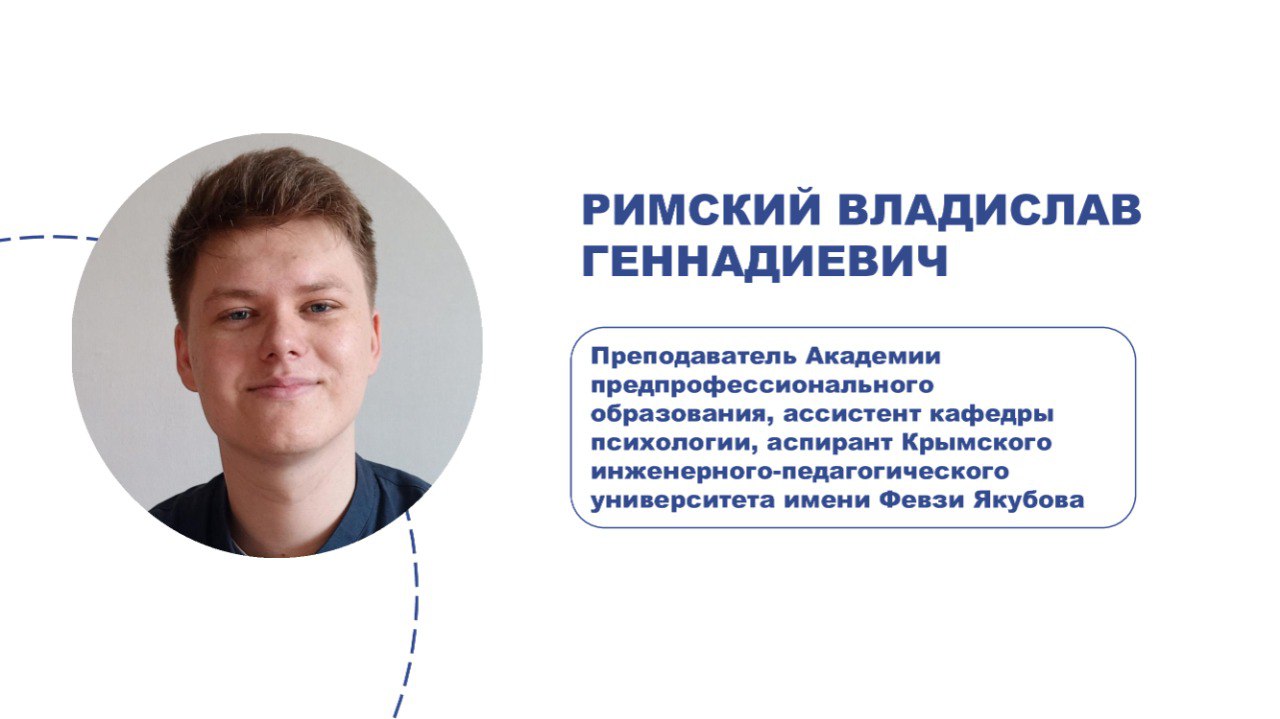 Секретарь Крымского отделения РПО – Римский Владислав Геннадиевич Преподаватель Академии предпрофессионального образования, ассистент кафедры психологии, аспирант Крымского инженерного-педагогического университета имени Февзи Якубова